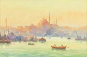 İmzalı, kâğıt üzerine suluboya.