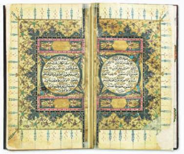 klasik taç tezhipli olup tüm sayfaları altın