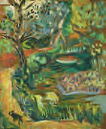 Signed, landscape painted on the reverse.